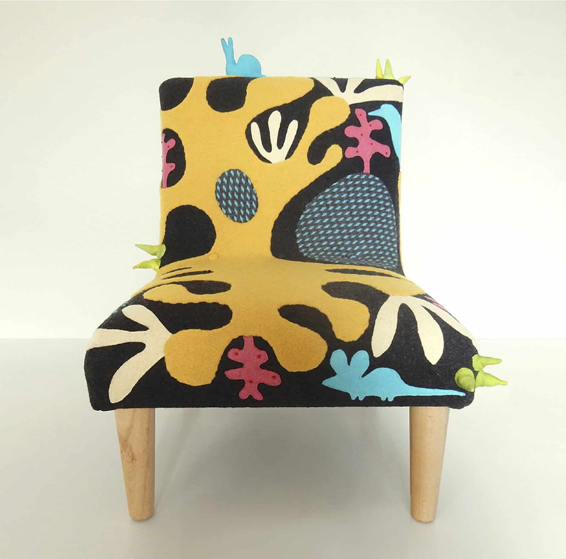 Oodles of doodles, bold, colourful hand stitched wool appliqué abstract shapes and animals. Embellished with little beads and a little snail called Ray.